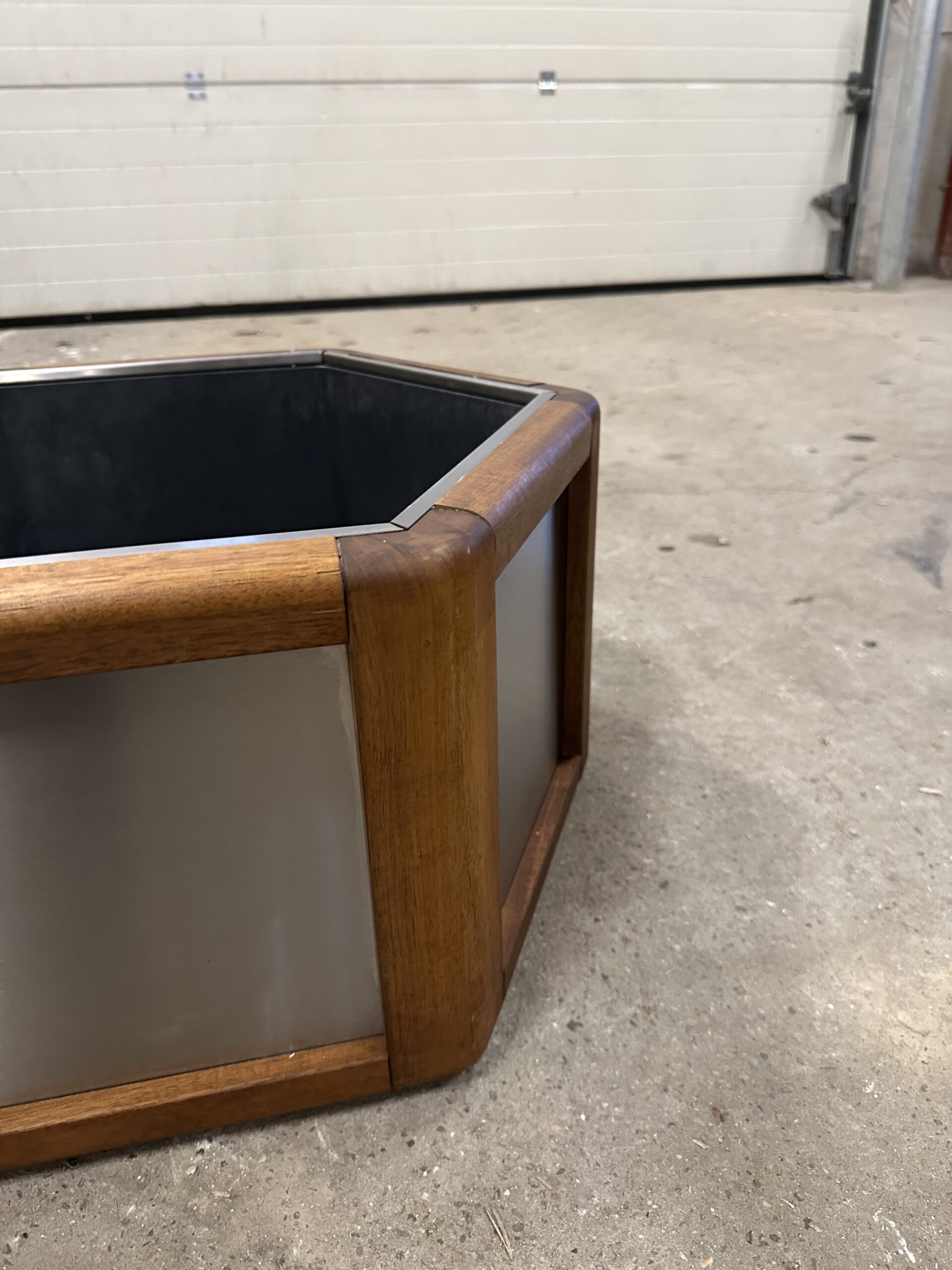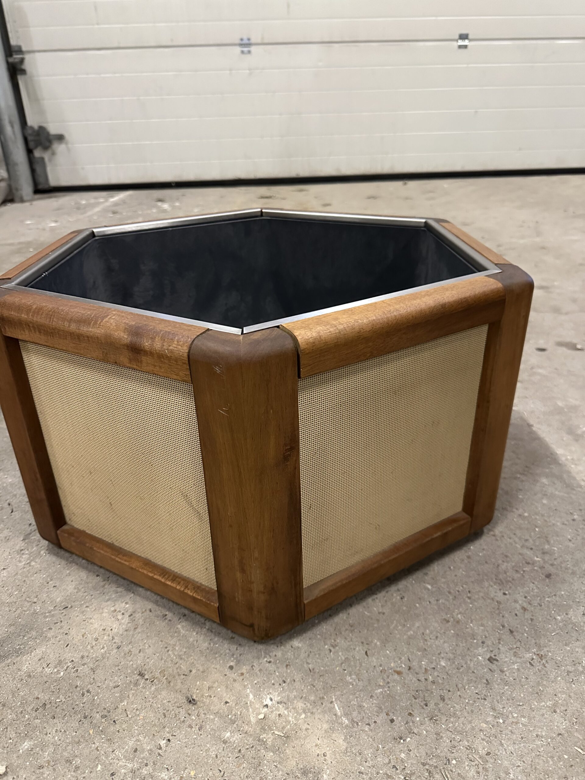 Stor sekskant af træ og rustfri stål med plastikinsats.