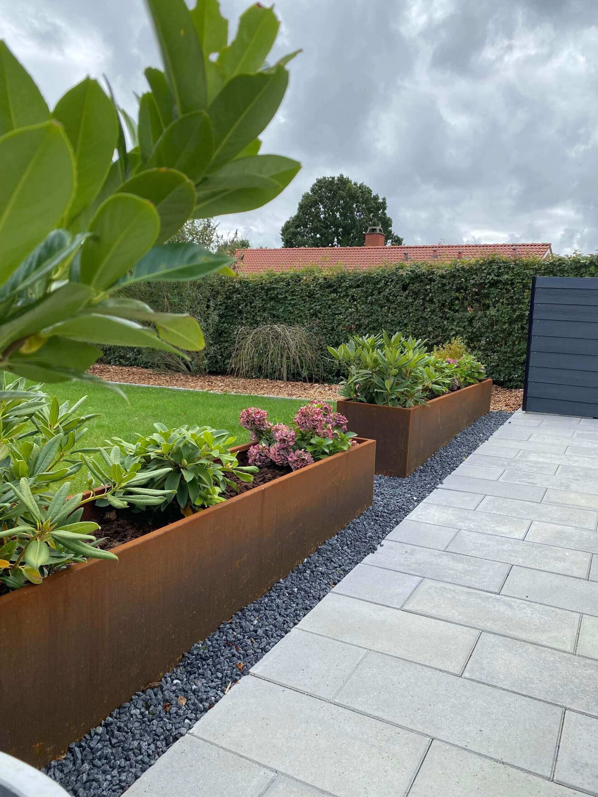 Ved at integrere HØ Ståls stålprodukter med velvalgte planter skaber du en have med karakter, hvor det naturlige og det forarbejdede spiller sammen i et udtryk, der holder sig flot år efter år.