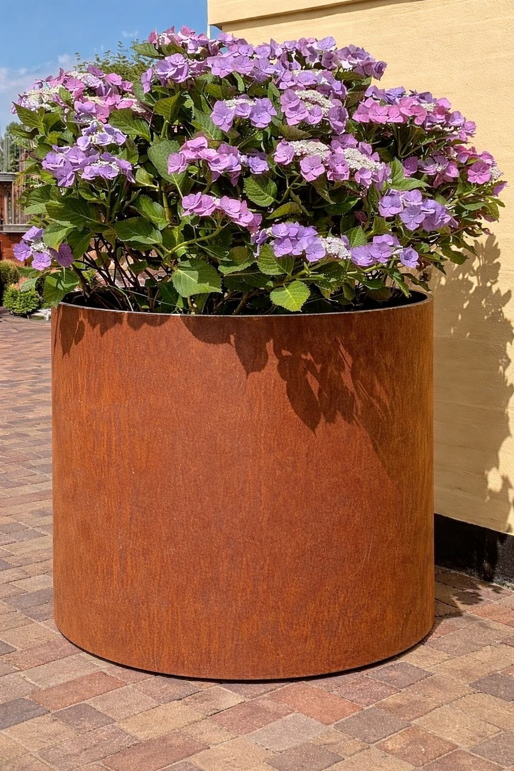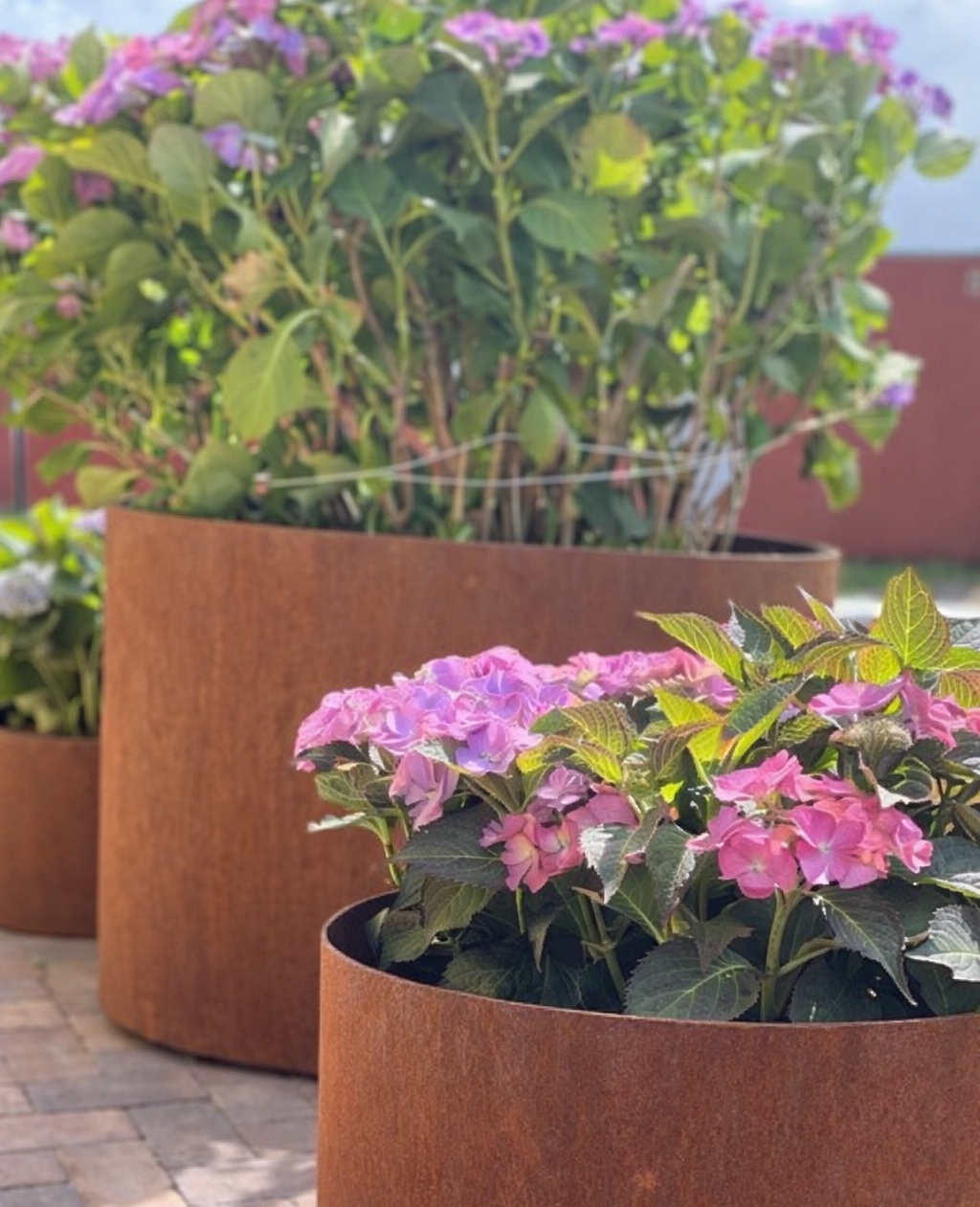 Cirkel kummen kan laves i forskellige størrelser som passer ind i jeres have med 2 mm corten – m/bund – skjulte hjul og drænhuller.
