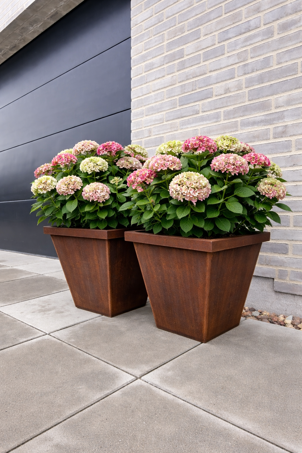 Med HØ Ståls Red Glow Trapez kumme får du en blomsterkumme, der er designet med henblik på planternes bedste. Kummerne er fremstillet i cortenstål med en tykkelse på 2 mm. Uanset hvad du vælger at plante heri, vil du have en robust plantekumme, der er designet til at modstå elementernes påvirkning over tid. Med målene H 35 B 38 B 21 cm er der rig mulighed for mange plantemuligheder. Du kan vælge planter fra en lang række plantetyper, fra prydgræsser til små træer.