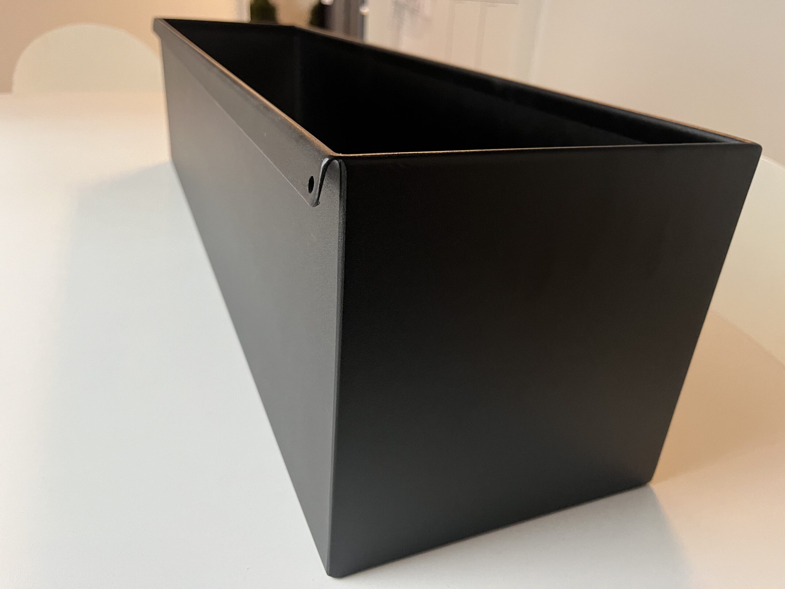 Rustfri stål 1,5 mm – Fuldsvejst & slebet – Pulverlakeret RAL 9005 FS IGP – beslag til ophæng medfølger (skruer og ravpluks til montage medfølger ikke).